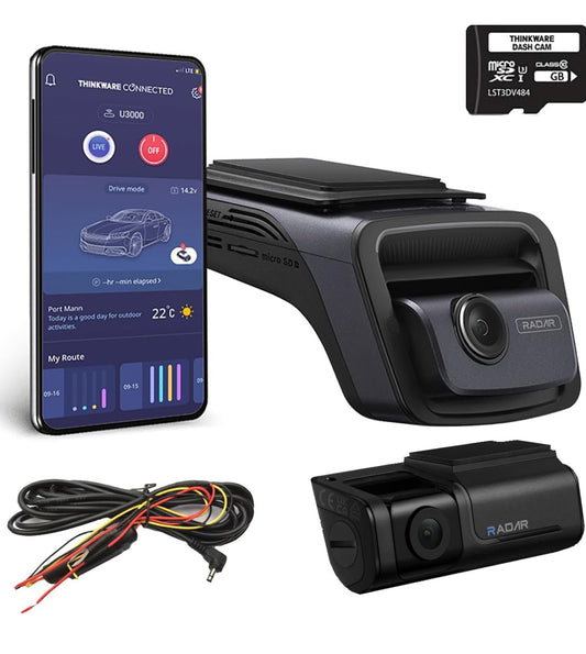 THINKWARE U3000 4K 2CH Front/Rear Dash Cam + 64GB memory card